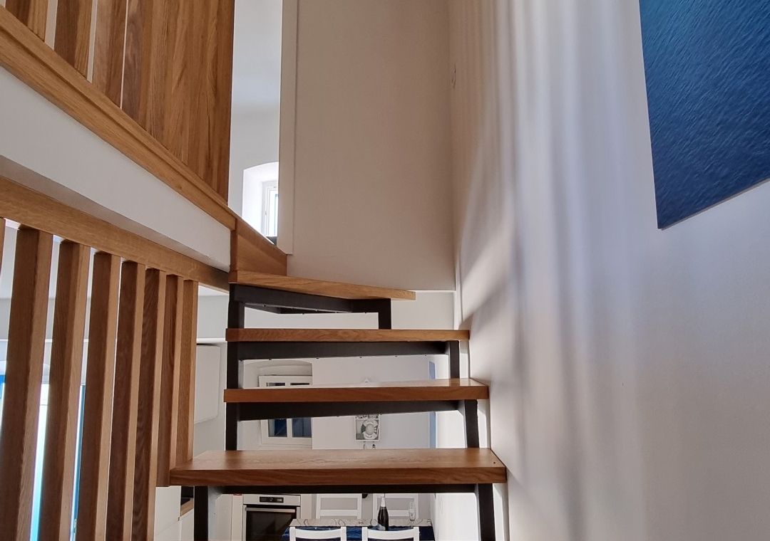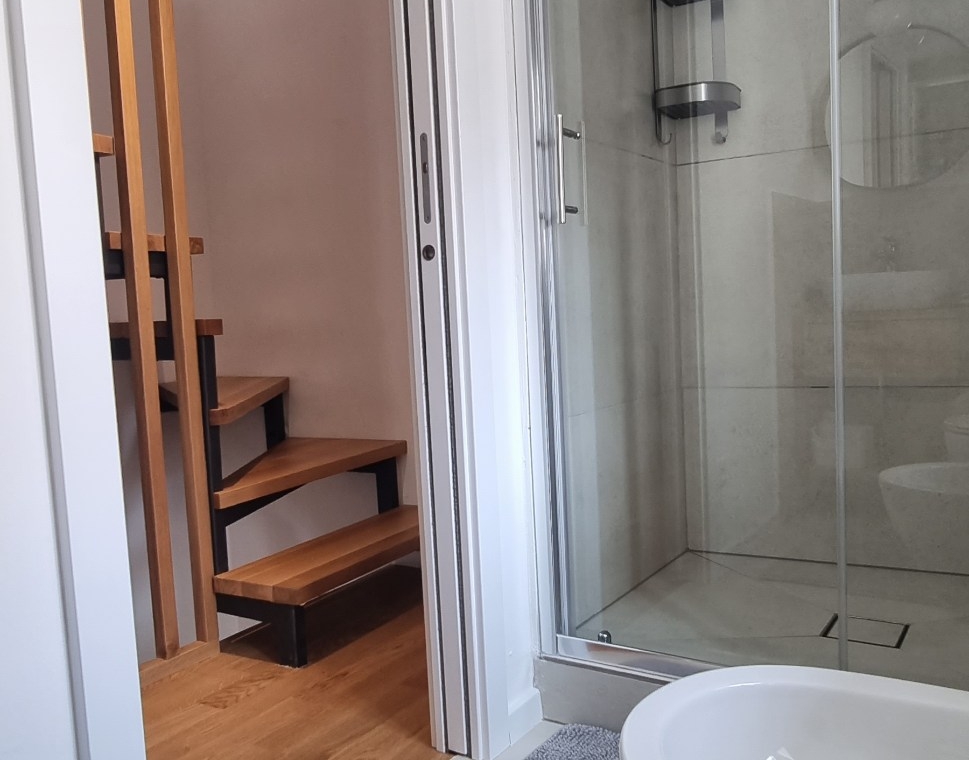 It consists of the 1st (living room + kitchen) and 2nd floor (bedroom and bathroom).