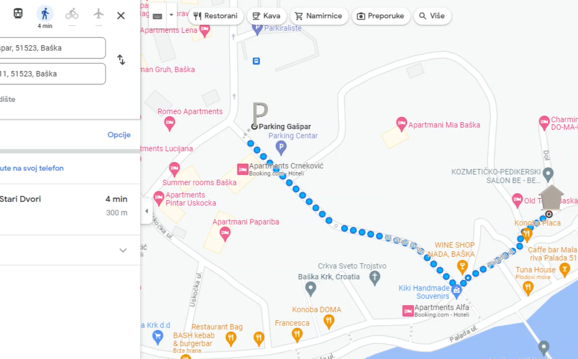 The apartment is located in the old center of Baška and is not accessible by car.